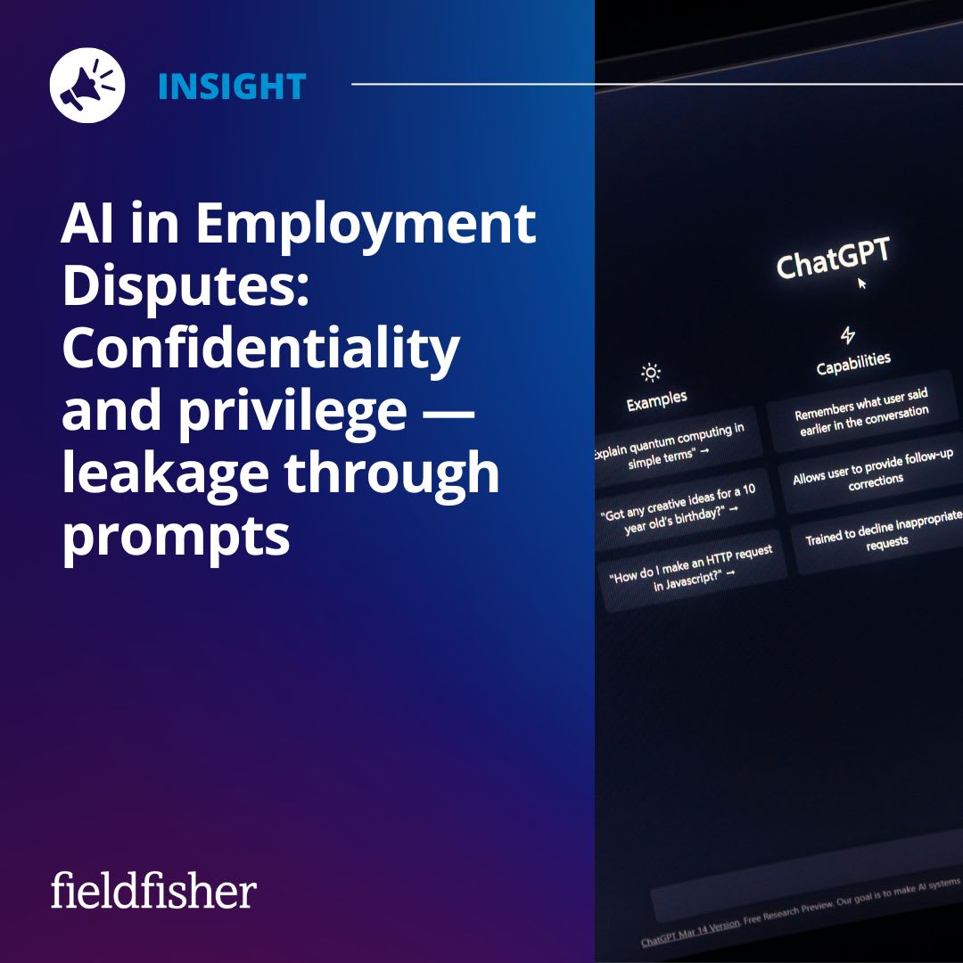 Fieldfisher advises organizations to audit whether AI tools keep prompts and outputs within their corporate environment, and to review AI use policies before the next round of employment litigation.